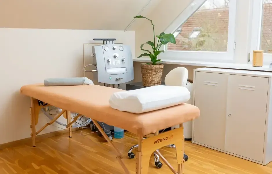 Die Liege nutze ich je nach Bedarf für Colon-Hydro, Massage, Klangmassage oder Infusionen – alles an einem Ort, diskret und professionell.